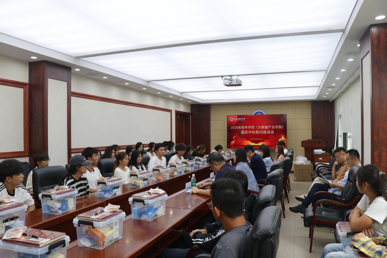 9月27日中午,软件学院(大数据产业学院)召开了国庆中秋慰问座谈会,学院党委书记邹黎明、院长王科、辅导员和40名2025级学生代表参加,学院党委副书记赵文奇主持座谈会。