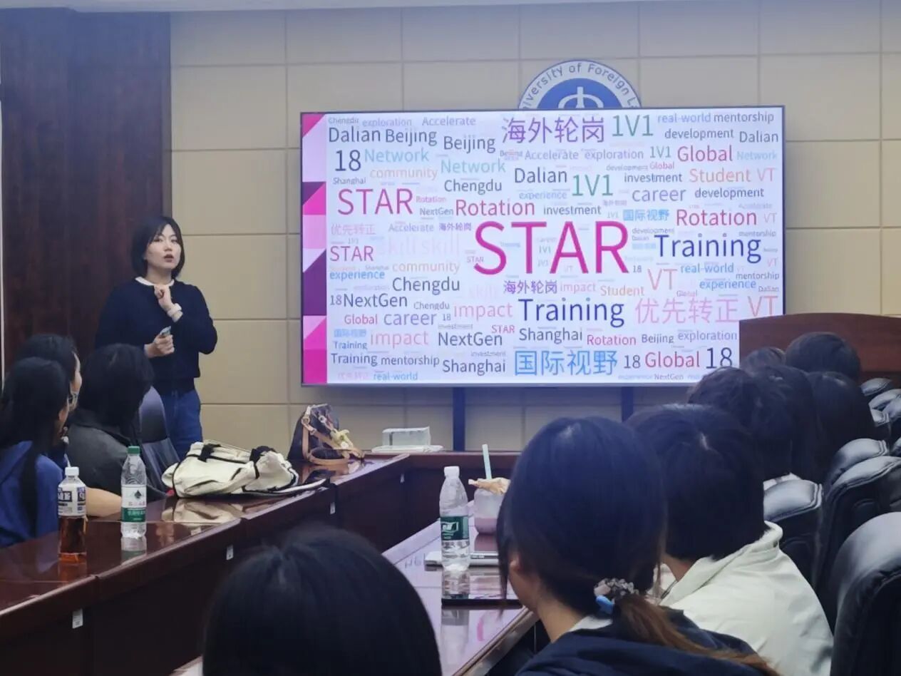 宣讲会聚焦SAP旗下备受瞩目的“钻石级杰出人才计划”(STAR项目),由该项目的大连经理马超主讲。她结合自身丰富的行业经验与企业实战案例,系统介绍了SAP的发展历程、战略布局以及STAR项目的培养机制。该项目主要内容是挖掘招收兼具计算机和外语能力的复合型人才,通过企业有针对性的培训与再教育,输送到数字化客户互动经理、技术服务经理等核心岗位,打造一条特定的从人员招聘到员工发展成长的极具发展潜力的职业发展路径。