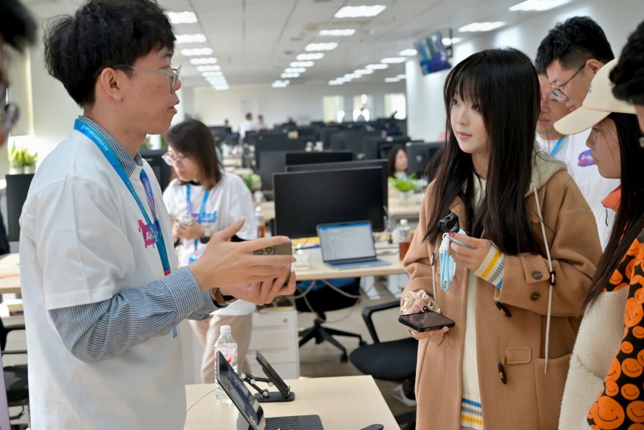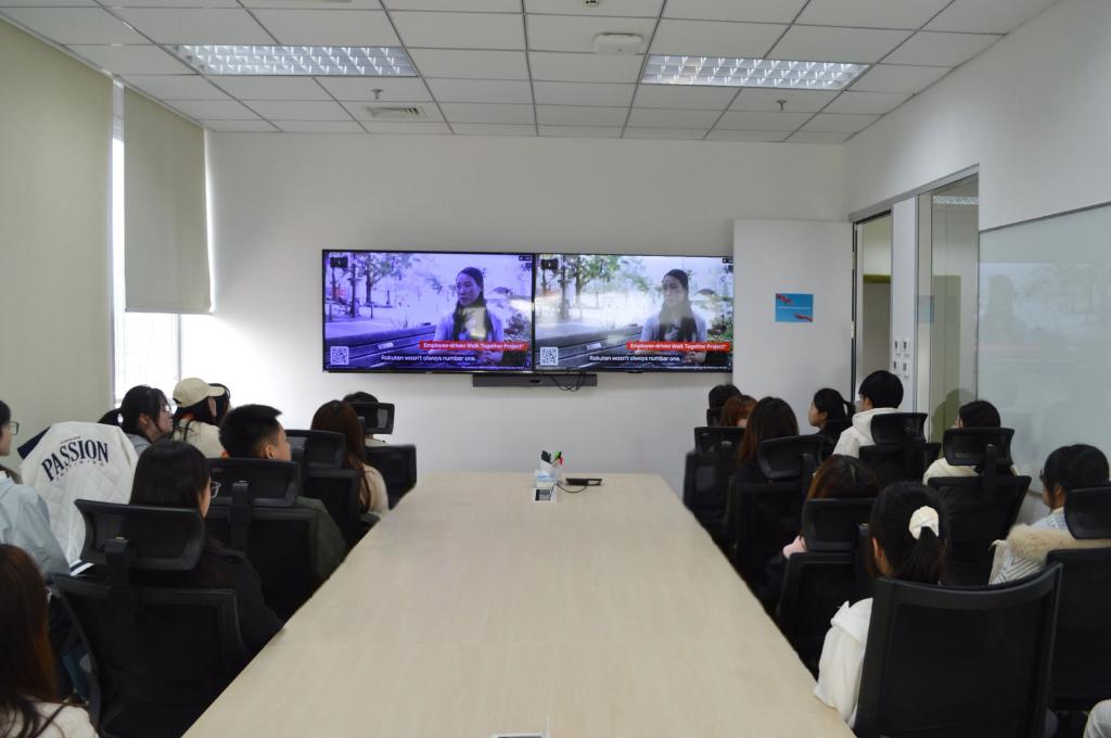 乐天创研公司业务覆盖电商、营销、AI等多个前沿领域。会后,在企业工作人员的引导下,师生们实地探访办公环境、参观最新的技术产品,聆听各部门技术骨干讲解岗位职责与技术应用,零距离感受专业知识在真实业务中的落地方式。