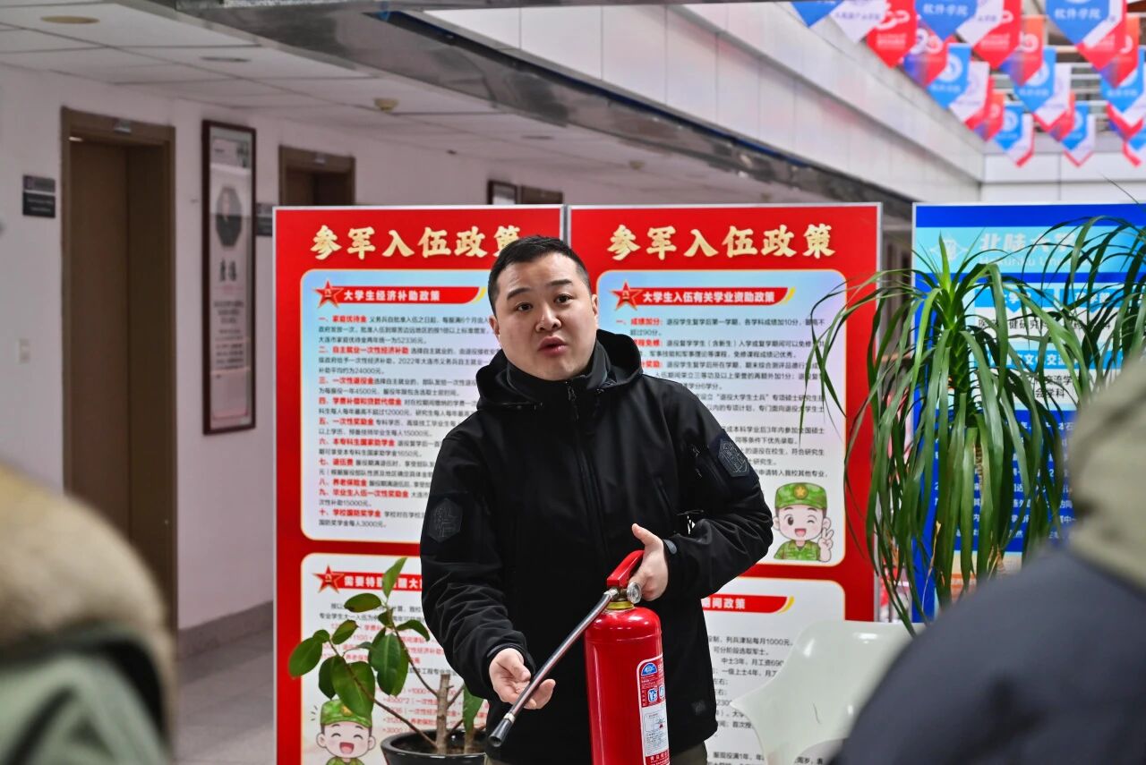 为了增强培训的专业性和实操性,学院特别邀请学校保卫处消防专干宋龙飞老师在演练现场授课指导。宋老师结合校园消防安全实际,详细讲解了各类消防器材的核心功能、使用方法及日常维护要点。在紧急疏散演练环节,学院领导靠前指挥,全体辅导员现场引导,同学们反应迅速、行动有序,按照预定疏散路线快速撤离,整个演练过程规范高效,达到了预期效果。